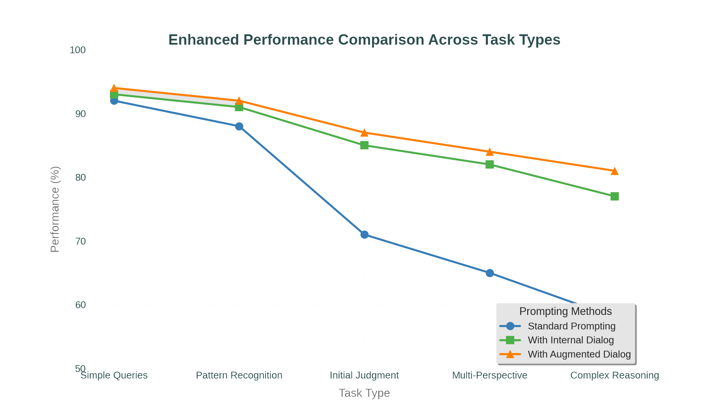 The effect was negligible on simple queries—the model didn't need additional activation. But as task complexity increased, the gap widened. On complex reasoning tasks, the augmented approach outperformed baseline by roughly 20 percentage points.